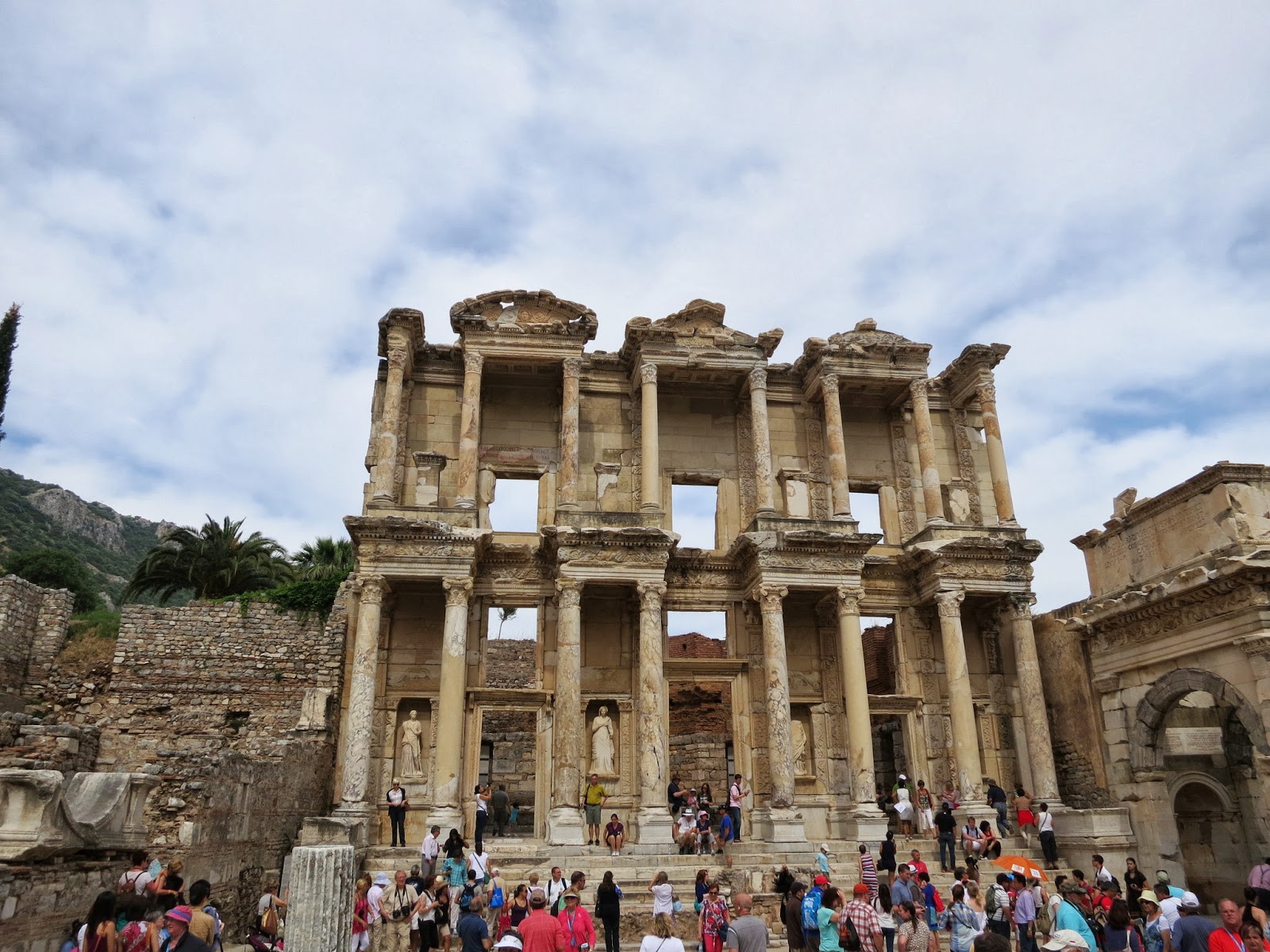 The next morning we woke up in Kusadasi, Turkey. The main attraction in this tourist town is Ephesus, which is about a 30 minute drive outside the city. Ephesus is a former Greek town, turned Roman city, famous for having the temple of Artemis (one of the ancient wonders of the world). While walking to find the transport to take us to Ephesus, we met a nice British couple who was also going to Ephesus. The van didn't take us to the entrance of Ephesus, but instead dropped us off at the base of the mountain. We were told to walk left, about 5km (3.2 miles) around the side of the mountain to the entrance. Well, half of the people in our bus went straight, and we turned left like the guy who gave directions said. We were still with the British couple, so that provided some nice entertainment for the walk ahead. It seemed like the road was leading nowhere. We passed multiple cars and buses, a few fields with cows, and a field with women working in it (they all stopped and stared as we walked by). Finally, about an hour later, we reached the entrance of Ephesus. It was incredibly crowded, with tour groups everywhere. Despite the crowds, we were extremely impressed with the old city. The amount we saw covered a lot of ground and we considered it to be large, but in reality only 10% has been uncovered. We found out later that if we had walked straight instead of left you could enter through the exit, which was about 200m from where we got off.