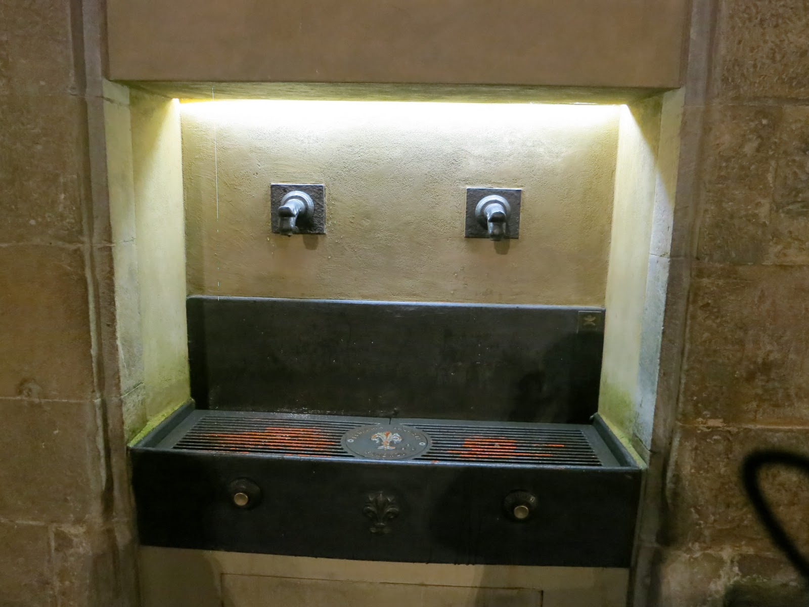 water fountain that dispenses sparkling water on left, and natural water on right |